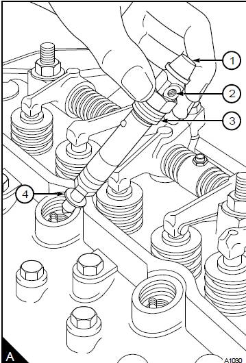 3松開卡箍螺母(A3)并從缸蓋凹處拆下噴油器及其座圈。