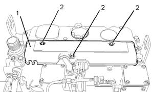 3.安裝罩(1)的調(diào)整螺釘(2)。將調(diào)整螺釘(2)擰緊至扭矩為9N·m(7lbft)。
