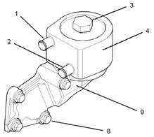 6.如有必要,拆卸調(diào)整螺釘(8)以從缸體拆卸機油冷卻器座(9)。從缸體上拆下接頭。棄置接頭。