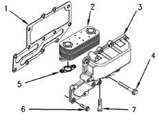 1.清潔機油冷卻器座(9)和機油冷卻器體(4)的配合面。如果拆下了機油冷卻器座(9),清潔機油冷卻器座和缸體的配合面。
