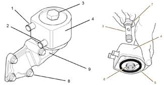 3.將殼體(3)和新接頭(1)放置在缸體上。安裝調(diào)整螺釘(4)和調(diào)整螺釘(6),從而將殼體(3)固定至缸體。