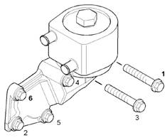 4.將新密封圈(7)安裝到適配器(3)上。將適配器(3)穿過機油冷卻器體(4)安裝到機油冷卻器座(9)中。將適配器(3)擰緊至扭矩57N·m(42lbft)。