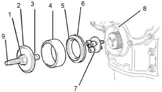 10.逆時(shí)針轉(zhuǎn)動(dòng)襯套(5),同時(shí)拉動(dòng)襯套,才能從油封殼體(8)上拆下襯套。拆下適配器(7)。