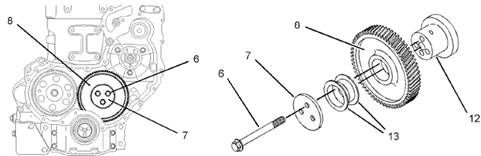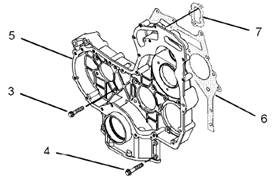 8.使用內(nèi)六角螺釘(3和4),將附件驅(qū)動(dòng)組件安裝到前殼體(6)的后面。擰緊六角頭螺釘至扭矩為22N·m(16lbft)。