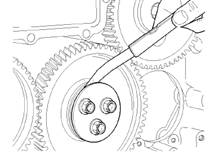 12.拆卸曲軸正時(shí)銷(3)和凸輪軸正時(shí)銷(4)。
