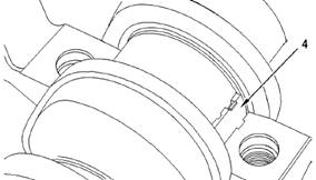 4.用適當?shù)墓ぞ撸瑥妮S承凸舌對面(4)推壓上軸瓦。推動軸瓦(4)的同時,小心地轉(zhuǎn)動曲軸。從缸體上拆下上軸瓦(4)。為保證正確安裝,將所有軸瓦(4)的上半部分放在一起。