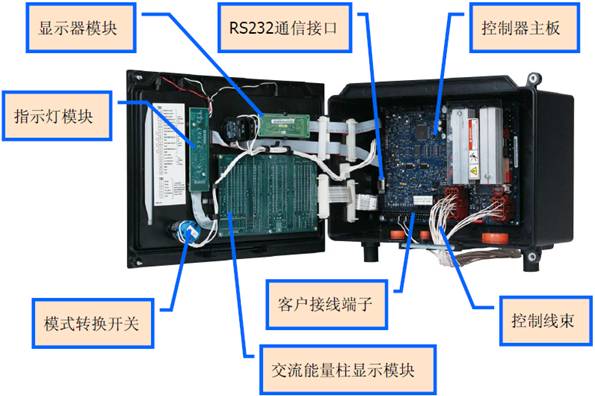 交流能量柱:面板能顯示額定值的百分數(shù)。顯示三相交流電流,功率,機組頻率,三相電壓,功率因數(shù)。