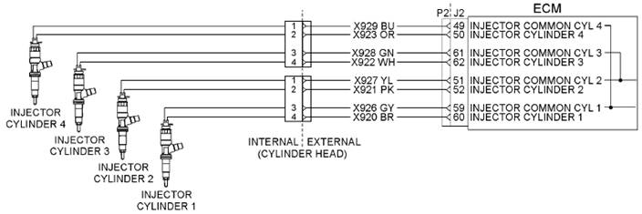 Perkins 1206E-E66發(fā)動機電磁閥對噴油器P2連接器的引腳位置