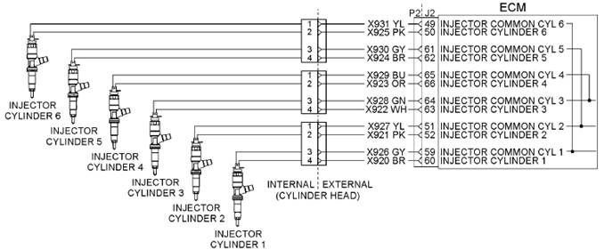 注意事項:1缸和2缸相同連接器。缸3缸和4缸相同連接器。缸5缸和6缸相同連接器。