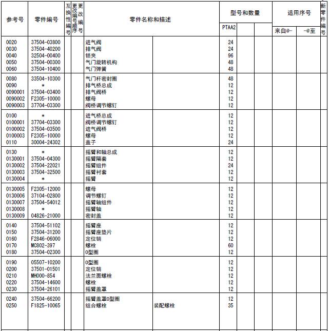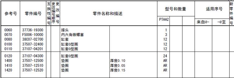 該零部件,在FROM 欄里表示從幾號開始能夠適用、在UPTO 欄里表示到幾號為止能夠適用。