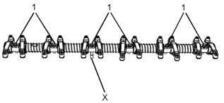 1使用工具(A)逐步松開torx螺釘(1)。從搖臂軸組件兩端開始向中間進行。