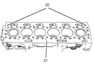 20.如有必要,從缸蓋上卸下水溫調(diào)節(jié)器。有關(guān)正確的步驟,請參閱《Perkins柴油機Perkins柴油機拆解和組裝》,“水溫調(diào)節(jié)器-拆卸和安裝”。