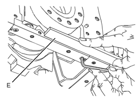 c.使用工具(E),對齊橋接件(10)的后表面與缸體的后表面。