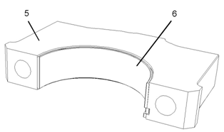 5將主軸瓦下軸瓦(6)安裝到主軸瓦蓋(5)中。確保主軸瓦下軸瓦的定位凸舌正確座入軸瓦蓋的槽中。