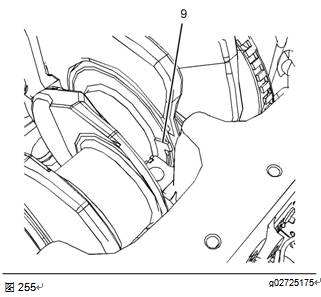 8使用清潔的發(fā)動(dòng)機(jī)機(jī)油潤滑止推墊圈(9)。將止推墊圈(9)安裝到缸體的6號(hào)主軸瓦中。