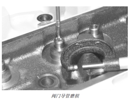 如果閥門導(dǎo)管與閥桿油隙超出磨損極限,需要更換加粗閥桿。到已認(rèn)證的維修站選配閥門導(dǎo)管,以保證閥門導(dǎo)管與閥桿間隙符合技術(shù)規(guī)格的要求。如果閥門導(dǎo)管與閥桿油隙超出磨損極限,但不足 0.20 毫米(0.008 英寸),允許對(duì)閥門導(dǎo)管滾花,然后用絞刀加工到要求的尺寸。但是,應(yīng)當(dāng)首先選擇安裝加粗閥桿。(參見本章后面“閥門導(dǎo)管滾花”部分。)