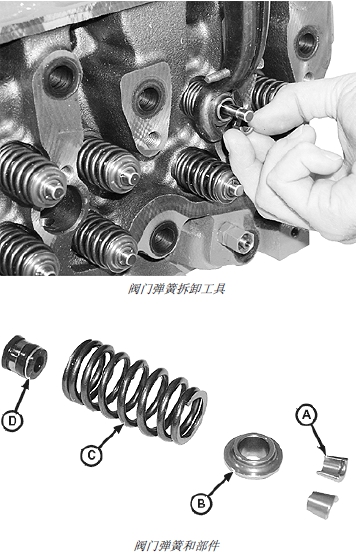 重要提示: 為保證閥門連接件排列整齊,進氣閥門、排氣閥門、閥門座鑲圈、彈簧和固定環(huán)必須成對更換。而且,更換上述任一部件應同時更換連接件。