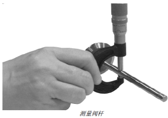 2. 測量閥桿外徑。測量閥桿外徑,記錄測量數(shù)據(jù)并與閥門導管內徑相比較。(請參閱本章中的“測量閥門導管內徑”部分。)
