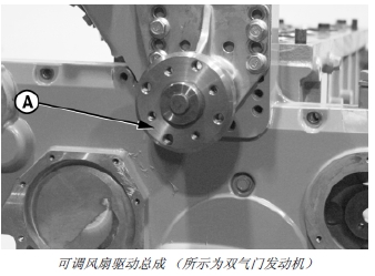 13. 拆下可調(diào)風(fēng)扇驅(qū)動(dòng)總成 (A)。(參見第 070 章中的“拆卸和檢查風(fēng)扇驅(qū)動(dòng)總成”部分。)