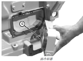 7. 拆下機(jī)油冷卻器 (G)。