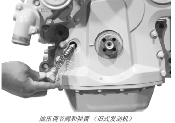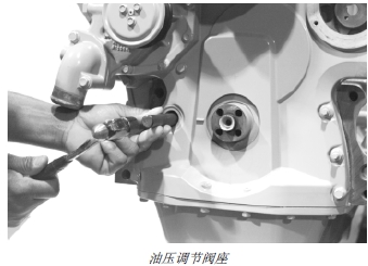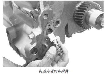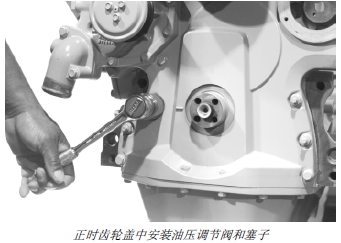 7. 將油壓調(diào)節(jié)閥、彈簧、墊圈和塞子裝入正時(shí)齒輪蓋。按技術(shù)規(guī)格要求擰緊塞子。