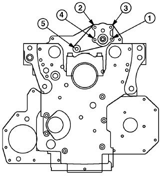 注意: 此步驟用于在未拆卸正時(shí)齒輪蓋的情況下安裝機(jī)油泵。如果從John Deere約翰迪爾強(qiáng)鹿柴油發(fā)動(dòng)機(jī)上拆下正時(shí)齒輪蓋,請(qǐng)參見(jiàn)第 050 章“安裝和正時(shí)平衡軸(四缸John Deere約翰迪爾強(qiáng)鹿柴油發(fā)動(dòng)機(jī))”部分。