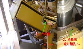 第一缸排氣沖程式上死點 并按柴油機(jī)正常轉(zhuǎn)向再將飛輪1轉(zhuǎn)動360°將定正時螺栓2擰入氣輪,凸輪固定銷孔3與凸輪軸銷孔4已對不上證明是第一缸排氣沖程式上死點??ㄌ乇死詹裼桶l(fā)動機(jī)|卡特彼勒柴油發(fā)動機(jī)氣門間隙調(diào)節(jié)技術(shù)|卡特彼勒柴油發(fā)動機(jī)氣門間隙調(diào)節(jié)資料|卡特彼勒柴油發(fā)動機(jī)氣門間隙調(diào)節(jié)維修服務(wù)商