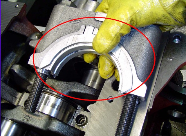 主軸承蓋裝反時(shí),A處與B處干涉,無(wú)法裝配,安裝主軸承蓋要注意編號(hào)。