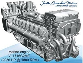 新型 Isotta 推進(jìn)發(fā)動機(jī) V 1712 C2 MLH 船用柴油發(fā)動機(jī),四沖程循環(huán)柴油發(fā)動機(jī),博世高壓共軌燃油噴射系統(tǒng),帶廢氣渦輪增壓器和管式原水/增壓空氣中冷的增壓系統(tǒng),發(fā)動機(jī)冷卻系統(tǒng)設(shè)計(jì)用于淡水/海水龍骨冷卻型熱交換器,帶有集成集水箱和恒溫控制,絕熱排氣歧管。