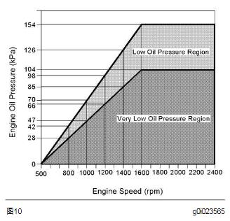 RENR5033-0275 故障排除章節(jié) 圖10g0i023565機(jī)油壓力圖系統(tǒng)響應(yīng):360(1)當(dāng)該事件代碼激活,“ 檢查CAT發(fā)動(dòng)機(jī)燈” 會(huì)閃亮。一旦CAT發(fā)動(dòng)機(jī)機(jī)油壓力升至21 kPa (3 psi),超過(guò)圖10中“機(jī)油低壓范圍”達(dá)到20秒,事件代碼會(huì)被記錄。 360(2)當(dāng)該事件代碼激活,“ 檢查CAT發(fā)動(dòng)機(jī)燈” 會(huì)閃亮。一旦CAT發(fā)動(dòng)機(jī)機(jī)油壓力升至21 kPa (3 psi),超過(guò)圖10中“機(jī)油低壓范圍”達(dá)到20秒,事件代碼會(huì)被記錄。 可能的性能影響:360(1)• 沒(méi)有性能影響。360(2)• ECM以每秒17.5%的速率,恢復(fù)扭矩到100%。故障排除:• CAT發(fā)動(dòng)機(jī)潤(rùn)滑系統(tǒng)存在問(wèn)題。• CAT發(fā)動(dòng)機(jī)機(jī)油壓力傳感器存在問(wèn)題。檢查CAT發(fā)動(dòng)機(jī)機(jī)油油位。A.檢查CAT發(fā)動(dòng)機(jī)機(jī)油油位。期望結(jié)果:CAT發(fā)動(dòng)機(jī)油位正常。結(jié)果:• OK-CAT發(fā)動(dòng)機(jī)油位正常。修理:參考《系統(tǒng)運(yùn)行/測(cè)試和調(diào)整》“ 潤(rùn)滑系統(tǒng)”獲得機(jī)油壓力的信息。停止。• 不行-CAT發(fā)動(dòng)機(jī)油位低。修理:添加機(jī)油到適當(dāng)位置。停止。i02490800E361冷卻液溫度高SMCS 代碼: 1395-038-TA生成該代碼的條件:發(fā)生下列情況:361(1)• CAT發(fā)動(dòng)機(jī)運(yùn)行至少3分鐘。• 冷卻溫度至少110 °C (230 °F)達(dá)到10秒。注意:如果冷卻溫度降至2 °C (36 °F),低于停止點(diǎn)達(dá)到4秒,警告會(huì)被取消。 361(2)• CAT發(fā)動(dòng)機(jī)運(yùn)行至少3分鐘。• 冷卻溫度至少111 °C (232 °F)達(dá)到10秒。注意:如果冷卻溫度降至2 °C (36 °F),低于停止點(diǎn)達(dá)到45秒,功率下降會(huì)被取消。 系統(tǒng)響應(yīng):361(1)