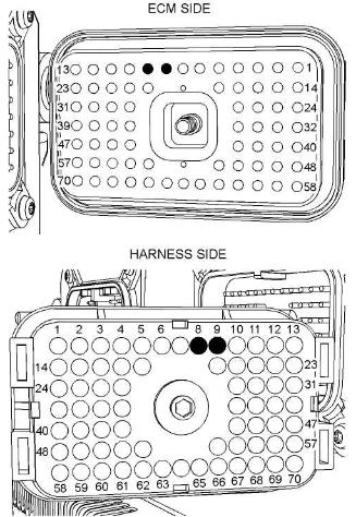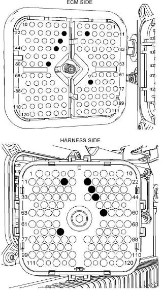 圖18J1/P1 ECM接頭(發(fā)動(dòng)機(jī)左視圖)gO1214624