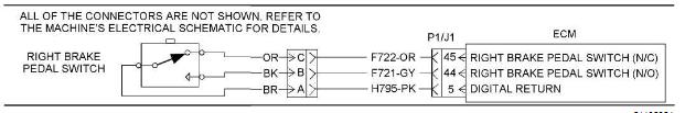 工程機(jī)械CAT卡特發(fā)動機(jī)減速開關(guān)運(yùn)行右剎車踏板開關(guān)電路測試描述