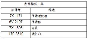 E.拆除正時(shí)校準(zhǔn)口悶頭。F旋入變換器接頭。繼續(xù)以下測(cè)試步驟。測(cè)試步驟2.安裝變換器注意如果當(dāng)變換器安裝時(shí),曲軸沒有處于正確位置,那么卡特彼勒CAT發(fā)動(dòng)機(jī)啟動(dòng)后,變換器會(huì)損壞。A.使用干凈機(jī)油清潔2D-6392O型密封圈。在6V-2197變換器端部安裝O型密封圈。B.將變換器推入變換器接頭,直到變換器接觸曲軸平衡重。C.拉回變換器1.0mm(0.04inch),手動(dòng)緊固接頭套上螺栓以固定變換器。向接頭移動(dòng)O型密封圈。繼續(xù)以下測(cè)試步驟。測(cè)試步驟3.連接7X-1695電纜總成A.如果卡特彼勒CAT發(fā)動(dòng)機(jī)線束配備正時(shí)校準(zhǔn)接頭,那么連接7X-1695電纜總成到接頭和變換器上。