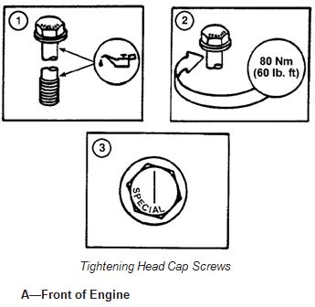 1.用清潔的SAE30強鹿約翰迪爾柴油發(fā)動機機油潤滑帶帽螺釘,并將其安裝在如前所述的正確位置。