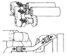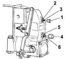 VOLVO沃爾沃柴油機(jī)的維修保養(yǎng)基本知識(shí) 安全注意事項(xiàng) VOLVO沃爾沃柴油發(fā)動(dòng)機(jī)每日檢查項(xiàng)目 養(yǎng)成在起動(dòng)發(fā)動(dòng)機(jī)之前和停機(jī)后直觀檢查發(fā)動(dòng)機(jī)的習(xí)慣。這有助于你及時(shí)發(fā)現(xiàn)燃油、潤(rùn)滑油或冷卻液的泄漏和其它一些已經(jīng)發(fā)生或?qū)⒁l(fā)生的異常情況。 VOLVO沃爾沃柴油發(fā)動(dòng)機(jī)一般的常規(guī)保養(yǎng) a) 檢查/更換空氣濾清器 發(fā)動(dòng)機(jī)停機(jī)后,空氣阻塞指示器如仍滯留紅標(biāo)時(shí),則應(yīng)更換空氣濾清器。更換后應(yīng)按壓阻塞指示器上的按鈕使其指示復(fù)位。 注意!空氣阻塞指示器未顯示紅標(biāo)時(shí),需更換空氣濾清器。被更換的空氣濾清器不能清洗和回用。 重要事項(xiàng)!連續(xù)運(yùn)行時(shí),應(yīng)該每8小時(shí)檢查一次空氣濾清器。 b) 檢查VOLVO沃爾沃柴油發(fā)動(dòng)機(jī)進(jìn)氣管路有無(wú)泄漏 檢查進(jìn)氣管路有無(wú)裂縫或其它損壞。如有必要應(yīng)予更換。檢查所有的軟管夾箍。 c) 調(diào)整VOLVO沃爾沃柴油發(fā)動(dòng)機(jī)怠速 首先檢查空氣濾清器是否堵塞。檢查當(dāng)油門機(jī)構(gòu)處于怠速位置時(shí),噴油泵上的油門拉桿(1)是否靠在怠速限位螺釘(2)上。還要檢查當(dāng)油門控制桿在最大油量位置時(shí),油門拉桿是否壓在最大供油限位螺釘(3)上。如有必要,則進(jìn)行調(diào)整。 警告提示!靠近正在運(yùn)行的發(fā)動(dòng)機(jī)或在其上工作是有危險(xiǎn)的。要小那些正在旋轉(zhuǎn)的零部件和高溫表面。 d) VOLVO沃爾沃柴油發(fā)動(dòng)機(jī)RSV調(diào)速器 1) 讓發(fā)動(dòng)機(jī)在怠速下運(yùn)行。 2) 如有必要,卸下園項(xiàng)螺帽(1),擰松鎖緊螺母(2),用螺釘(3)調(diào)整發(fā)動(dòng)機(jī)怠速。 如果發(fā)動(dòng)機(jī)空轉(zhuǎn)轉(zhuǎn)速不穩(wěn),應(yīng)該按下述方法調(diào)整其穩(wěn)定性。 1) 拆下園頂螺帽(4)并擰松鎖緊螺母(5)。小心地按順時(shí)針方向擰動(dòng)怠速穩(wěn)定螺(6),直到發(fā)動(dòng)機(jī)轉(zhuǎn)速穩(wěn)定為止。 2) 檢查最高空轉(zhuǎn)轉(zhuǎn)速有否改變,如有改變,則說(shuō)明怠速穩(wěn)定螺釘(6)調(diào)整過(guò)大。 3) 完成調(diào)整后,鎖緊怠速穩(wěn)定螺釘(6),擰上園頂螺帽(4) e) VOLVO沃爾沃柴油發(fā)動(dòng)機(jī)RQV,RQ調(diào)速器 1) 讓發(fā)動(dòng)機(jī)在怠速下運(yùn)行。 2) 如有必要,用怠速螺釘(1)調(diào)整發(fā)動(dòng)機(jī)的轉(zhuǎn)速。 f) 檢查和調(diào)整VOLVO沃爾沃柴油發(fā)動(dòng)機(jī)傳動(dòng)皮帶 傳動(dòng)皮帶的檢查和調(diào)整應(yīng)該在發(fā)動(dòng)機(jī)運(yùn)行后皮帶熱態(tài)時(shí)進(jìn)行。 在張緊充電發(fā)電機(jī)皮帶之前,應(yīng)先擰松螺栓(A),使皮帶在兩皮帶輪的中點(diǎn)處可被壓下10mm,然后再擰緊螺栓(A)。成對(duì)工作的皮帶磨損后應(yīng)同時(shí)更換。 風(fēng)扇皮帶有自動(dòng)張緊器,不需要調(diào)整。但是必須檢查皮帶的狀況。如有必要,予以更換。 VOLVO沃爾沃柴油發(fā)動(dòng)機(jī)潤(rùn)滑系統(tǒng) 潤(rùn)滑油的更換周期取決于潤(rùn)滑油的品質(zhì)和燃油的硫含量,在40到500小時(shí)之間不等。要注意潤(rùn)滑油的更換周期決不可超過(guò)12個(gè)月。 如果要求潤(rùn)滑油的更換周期比下表所列時(shí)間更長(zhǎng),則潤(rùn)滑油的性狀必須由潤(rùn)滑油制造廠商作定期檢測(cè)。 VOLVO沃爾沃柴油發(fā)動(dòng)機(jī)潤(rùn)滑油 注意!只要能滿足上述要求,礦基的、半合成和全合成潤(rùn)滑油都可以使用。 1)必須使用TBN14-20潤(rùn)滑油 VDS=Volvo發(fā)動(dòng)機(jī)潤(rùn)滑油規(guī)格 ACEA=歐洲汽車制造商協(xié)會(huì) API=美國(guó)石油學(xué)會(huì) VOLVO沃爾沃柴油發(fā)動(dòng)機(jī)機(jī)油粘度 應(yīng)根據(jù)穩(wěn)定的外界溫度,按此圖表選擇粘度合適的潤(rùn)滑油。*指合成或半合成潤(rùn)滑油。 檢查潤(rùn)滑油油位 確保油位在MIN(最低)和MAX(最高)標(biāo)記之間。 重要事項(xiàng)!連續(xù)運(yùn)行時(shí)應(yīng)每隔8小時(shí)檢查一次油位。 檢查靜態(tài)未運(yùn)轉(zhuǎn)發(fā)動(dòng)機(jī)的油位時(shí),應(yīng)查看油標(biāo)尺上標(biāo)有“STOP”(停機(jī))的那一面(至少等發(fā)動(dòng)機(jī)停止運(yùn)行3分鐘后)。 警告提示!靠近運(yùn)行中的發(fā)動(dòng)機(jī)或在其上工作是有危險(xiǎn)的。要小心那些旋轉(zhuǎn)著的零部件和灼熱表面。 更換VOLVO沃爾沃柴油發(fā)動(dòng)機(jī)潤(rùn)滑油和潤(rùn)滑油濾清器 必須遵守推薦的潤(rùn)滑油更換周期,并必須同時(shí)更換潤(rùn)滑油濾清器。 a) 徹底清潔濾清器安裝座,以免更換濾清器時(shí)污物進(jìn)入發(fā)動(dòng)機(jī)。 b) 使發(fā)動(dòng)機(jī)運(yùn)行至正常的工作溫度。 警告提示!高溫潤(rùn)滑油和灼熱表面會(huì)造成燙傷。 c) 拆下底部螺塞,放盡潤(rùn)滑油。 d) 換用新墊片后裝上底部螺塞。 e) 拆下濾情器 (1)和旁通濾情器(2)。檢查并確保發(fā)動(dòng)機(jī)的接合面上無(wú)殘留墊片。給新的濾清器加注潤(rùn)滑油,并在新墊片上薄施一層潤(rùn)滑油。用手?jǐn)Q緊濾清器直到壓住墊片,然后再擰緊半圈(不要擰得過(guò)緊?。?/P>