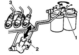 f) 加注潤(rùn)滑油至正確油位。不得超過(guò)MAX(最高)油位。 g) 起動(dòng)發(fā)動(dòng)機(jī),使其怠速運(yùn)行。檢查潤(rùn)滑油油壓是否正常。 h) 關(guān)停發(fā)動(dòng)機(jī)。檢查濾清器周圍有無(wú)潤(rùn)滑油泄漏。如有必要,添加潤(rùn)滑油。 將用過(guò)的潤(rùn)滑油及其濾清器按照環(huán)保要求處理。 VOLVO沃爾沃柴油發(fā)動(dòng)機(jī)冷卻系統(tǒng) 冷卻系統(tǒng)應(yīng)該使用能夠保護(hù)發(fā)動(dòng)機(jī)內(nèi)部免受腐蝕和凍結(jié)(如果氣候條件有此要求)的冷卻液。切勿只用普通水作冷卻液。 防腐添加劑的效能會(huì)隨時(shí)間而下降,因此必須定期更換冷卻液。若能遵循富豪遍達(dá)有關(guān)冷卻液的各項(xiàng)建議,則可以采用下列更換周期。 重要事項(xiàng)!更換冷卻液時(shí),必須先徹底沖洗冷卻系統(tǒng),見“沖洗冷卻系統(tǒng)”。更換冷卻液時(shí),毋須同時(shí)更換冷卻液濾清器(附件)。但在首次更換冷卻液的6個(gè)月后必須更換冷卻液濾清器,此后可每6個(gè)月更換一次,見“更換冷卻液濾清器”。 VOLVO沃爾沃柴油發(fā)動(dòng)機(jī)冷卻液 重要事項(xiàng)!為了避免發(fā)動(dòng)機(jī)和冷卻系統(tǒng)因凍結(jié)或腐蝕而造成阻塞或損壞,必須遵守下列建議: 水質(zhì) 切記必須使用符合ASTMD4985要求的凈水。如果不符合其要求,冷卻系統(tǒng)就有可能阻塞,從而降低冷卻效率。如果水的凈度不符合要求,則必須使用蒸餾水或已配制好的冷卻液。 總顆粒物 <340 ppm 總硬度 <9.5°dH 氯化物 <40 ppm 硫酸鹽 <100 ppm PH值 5.5-9 硅 < 20mg SiO2 perI 鐵 <0.10 ppm 錳 <0.05 ppm 導(dǎo)電率 < 500 uS per cm 有機(jī)物含量,CODMn <15 mg kMnO4 perI 檢查并添加冷卻液 警告提示!除遇緊急情況外,當(dāng)發(fā)動(dòng)機(jī)還在高溫時(shí),不要打開冷卻液加液口蓋。蒸汽或高溫冷卻液會(huì)噴射出來(lái)。 每天起動(dòng)前應(yīng)檢查冷卻液液位。必要時(shí)添加。冷卻液液面應(yīng)低于加液口密封面5 cm。裝有單獨(dú)的膨脹水箱時(shí),則加注到MIN(最低)和MAX(最高)標(biāo)記之間。 重要事項(xiàng)!添加的冷卻液應(yīng)和冷卻系統(tǒng)內(nèi)原有的冷卻液相同。 給已放空的冷卻系統(tǒng)灌充冷卻液 先檢查并確保所有的放水閥均已關(guān)閉。 放水閥和放氣閥的位置見下再示意圖 灌充冷卻液時(shí),必須關(guān)停發(fā)動(dòng)機(jī),然后緩慢加入,以使空氣能夠通過(guò)放氣閥和加液口排出。 如果發(fā)動(dòng)機(jī)冷卻系統(tǒng)中裝有加熱器,則必須打開加熱器的控制閥,以使加熱器在灌充時(shí)排氣。 灌充冷卻液應(yīng)達(dá)到規(guī)定的液位。在排盡冷卻系統(tǒng)內(nèi)的空氣和完全加滿冷卻液之前,切勿起動(dòng)發(fā)動(dòng)機(jī)。 起動(dòng)發(fā)動(dòng)機(jī)并運(yùn)行至節(jié)溫器開啟(這大約需要20分鐘)。發(fā)動(dòng)機(jī)起動(dòng)后,短暫地打開所有放氣閥,排出滯留的空氣。檢查冷卻液液位,如有必要,則添加。 放空VOLVO沃爾沃柴油發(fā)動(dòng)機(jī)的冷卻液 在放出冷卻液之前,必須關(guān)停發(fā)動(dòng)機(jī)并打開加液口蓋。 沖洗VOLVO沃爾沃柴油發(fā)動(dòng)機(jī)冷卻系統(tǒng) 散熱器和冷卻液通道內(nèi)的沉積物會(huì)降低發(fā)動(dòng)機(jī)的冷卻效能。因此,更換冷卻液時(shí)必須沖洗冷卻系統(tǒng)。 a) 按前述放盡冷卻液。 b) 在開啟的加液口中插入一根軟管,用清水沖洗,直到流出的水完全潔凈時(shí)為止。 c) 關(guān)閉放水閥和放水塔塞。按照“檢查和添加冷卻液”一節(jié)中的說(shuō)明加入新的冷卻液。 清洗空冷式中冷器外部(TAD增壓空氣冷卻器) 拆去散熱器的護(hù)罩,用清水和中性洗滌劑清洗冷卻器。可用軟毛刷刷洗,小心不要損壞散熱器片。重新裝好各零部件。 重要事項(xiàng)!不可用高壓水槍沖洗。 更換冷卻液濾清器 它具有過(guò)濾冷卻液和防腐保護(hù)作用。 重要事項(xiàng)!為防止過(guò)強(qiáng)的防腐保護(hù)而導(dǎo)致淤塞,在更換冷卻液時(shí)不應(yīng)同時(shí)更換冷卻液濾清器,而應(yīng)在首次更換冷卻液的6個(gè)月后更換,以后可每6個(gè)月更換一次濾清器。 關(guān)閉閥(1)。用合適的工具拆下濾清器。在密封墊上均勻涂沫少許潤(rùn)滑油并用手?jǐn)Q上新濾清器。當(dāng)密封墊開始被壓緊時(shí),再擰緊 1/2圈。打開閥( 1)。 VOLVO沃爾沃柴油發(fā)動(dòng)機(jī)燃油噴射系統(tǒng) 只能使用符合下列標(biāo)準(zhǔn)所推薦的品質(zhì)的燃油。加油時(shí)和對(duì)燃油噴射系統(tǒng)進(jìn)行工作時(shí),務(wù)必始終保持其高度的清潔。 所有涉及發(fā)動(dòng)機(jī)噴油泵或噴油器的工作,都必須由經(jīng)過(guò)授權(quán)的維修廠進(jìn)行。如果噴油泵上的鉛封已被打開,則所有的擔(dān)保均即無(wú)效。 警告提示!注意防火。必須要在發(fā)動(dòng)機(jī)冷卻后,才能對(duì)其燃油系統(tǒng)進(jìn)行工作。燃油濺到灼熱的表面或電路器件上可能引發(fā)火災(zāi)。存放吸有燃油的擦布要注意安全防火。 更換VOLVO沃爾沃柴油發(fā)動(dòng)機(jī)燃油濾清器 保持清潔!不得讓任何塵?;蛭畚镞M(jìn)入燃油系統(tǒng)。 警告提示!更換燃油濾清器應(yīng)在冷機(jī)狀態(tài)下進(jìn)行,以避免燃油濺到灼熱表面而引起著火。 拆下濾清器。在新的濾清器墊片上涂少