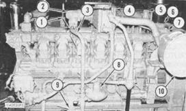 (1)化油器和燃?xì)鈮毫φ{(diào)節(jié)器間的平衡管路(2)化油器(3)通向化油器的燃?xì)庖牍苈罚?/span>4)后冷卻機(jī)(5)排氣旁通閥(6)排氣肘管(7)渦輪增壓器(8)燃?xì)鈮毫φ{(diào)節(jié)器(9)燃?xì)怅P(guān)閉閥(10)空氣過濾器