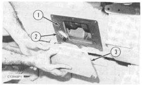 5. 將定時(shí)銷(2)安裝到卡特CAT發(fā)動(dòng)機(jī)組的定時(shí)孔(1)中,并保證定時(shí)銷裝進(jìn)卡特CAT發(fā)動(dòng)機(jī)兩側(cè)的凸輪軸(4)凹槽。為了使卡特CAT發(fā)動(dòng)機(jī)能夠正確的定時(shí),定時(shí)銷必須與凸輪軸凹槽嚙合。