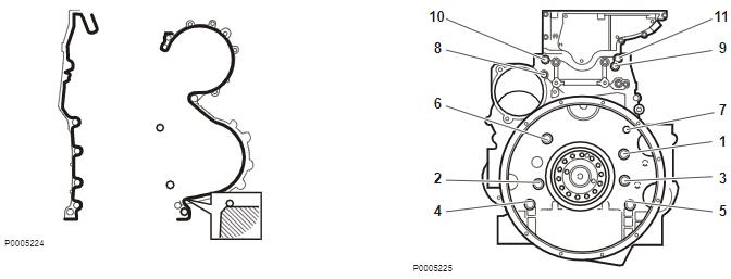 注意 安裝之前的最多 20 分鐘內(nèi)在槽外側(cè)涂上厚約 2 mm(0.0787 英寸)的硅珠,如上圖所示。飛輪殼按照順序?qū)⑺新菟ňo固至下述扭矩:M14 螺栓140 ± 20 Nm (103.3 ± 14.75lbf ft)M10 螺栓48 ± 8 Nm (35.4 ± 5.9 lbf ft)M8 螺栓24 ± 4 Nm (17.7 ± 2.95 lbf ft)03-2 技術(shù)參數(shù),發(fā)動機1247702575 01-2022 © AB VOLVO PENTA