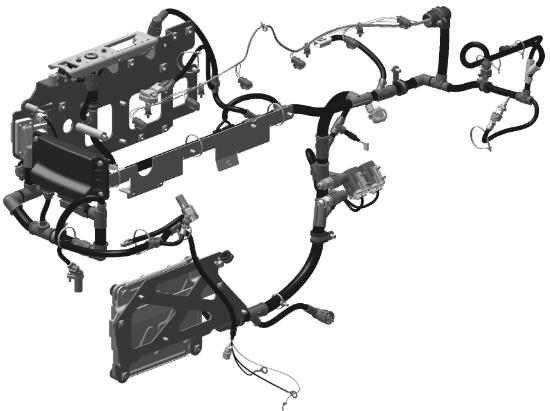 以下兩頁顯示如何將導(dǎo)線線束安裝到發(fā)動(dòng)機(jī)上。如需更換線束,參見電纜干線,更換 408 頁。重要!對發(fā)動(dòng)機(jī)進(jìn)行作業(yè)結(jié)束時(shí),必須按照圖示重新準(zhǔn)確安裝已拆下的導(dǎo)線線束和軟管。安裝不正確會造成振動(dòng)損壞。D13B-A/B/G/H/J/K、D13C1-A、D13C2-A(下一頁)空氣過濾器后面的 PCU(電源控制單元)與發(fā)動(dòng)機(jī)控制單元進(jìn)行通訊。有用于 11 個(gè)傳感器的觸點(diǎn)。停止按鈕位于左舷側(cè)上的油過濾器殼體上方。發(fā)動(dòng)機(jī)控制單元(ECU)位于左舷側(cè)上的熱交換器后面。D13B-C/D/E/F/L/M/N、D13C3-A、D13C4-A(前兩頁)空氣過濾器后面的電源模塊與發(fā)動(dòng)機(jī)控制單元進(jìn)行通訊。有用于 12 個(gè)傳感器的觸點(diǎn)。停止按鈕位于電源模塊上方。發(fā)動(dòng)機(jī)控制單元(ECU)位于左舷側(cè)上的熱交換器后面。