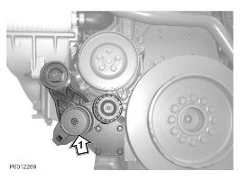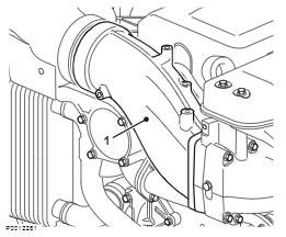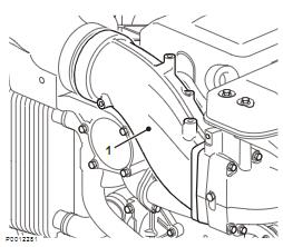 11 安裝恒溫器蓋。將螺栓(1)安裝到增壓空氣冷卻器上。