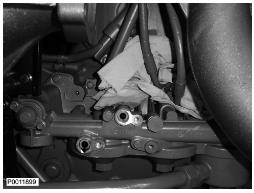 11 用新密封件將輸油軟管安裝到渦輪增壓器和廢氣門上。