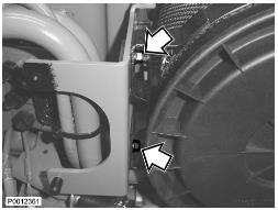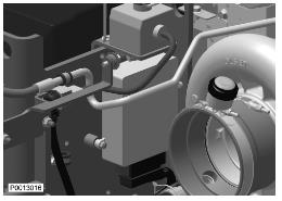 2 松開兩個過濾器殼體螺母并拆下過濾器。注意 交替松開將夾子緊固到過濾器下面的螺栓。圖示為 D13B-A/G/H/K 發(fā)動機(雙渦輪增壓器)。
