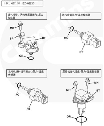 康明斯ISX、QSX 和 ISZ/QSZ13發(fā)動(dòng)機(jī)壓力和溫度傳感器、進(jìn)氣歧管、渦輪增壓器進(jìn)氣/壓力傳感器,進(jìn)氣歧管壓力/溫度傳感器,發(fā)動(dòng)機(jī)燃料調(diào)節(jié)器出口壓力/溫度傳感器,壓縮機(jī)進(jìn)氣濕度/壓力/溫度傳感器。