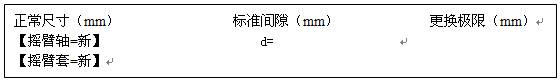 2.2用外徑千分尺測量搖臂軸直徑尺寸,用內(nèi)徑表測量襯套的內(nèi)徑,測量完畢后計算間隙,當(dāng)間隙超過磨損極限時,換用新的襯套。