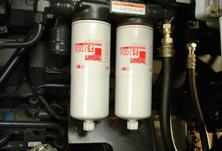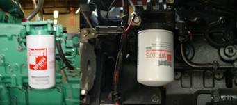 康明斯Cummins QSK23發(fā)動(dòng)機(jī)左側(cè)裝有兩個(gè)弗列加 LF9325 機(jī)油濾清器。濾清器內(nèi)有30微米全流濾清介質(zhì)及10 微米旁通濾清介質(zhì)。省去了旁通濾清器部分。