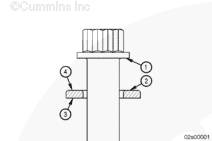 如果懷疑缸蓋螺栓的螺栓長度有問題,檢查缸體頂部與螺紋孔中的第一個(gè)螺紋之間的距離。如果距離約為 44 mm [1.75 in],必須安裝長度為 203 mm [8 in] 的螺栓。
