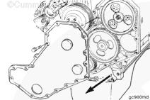 如果發(fā)現(xiàn)任何損壞,更換康明斯前齒輪室蓋。