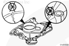 對(duì)于配備非唇形曲軸前油封的發(fā)動(dòng)機(jī),使用細(xì)砂布去除所有拉痕和毛刺。如果曲軸前端密封表面損壞,沒(méi)有可用的承磨襯套。