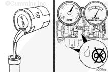 運(yùn)轉(zhuǎn)發(fā)動(dòng)機(jī)直到達(dá)到 80°C [180°F] 的溫度 ,檢查冷卻液或機(jī)油是否泄漏。